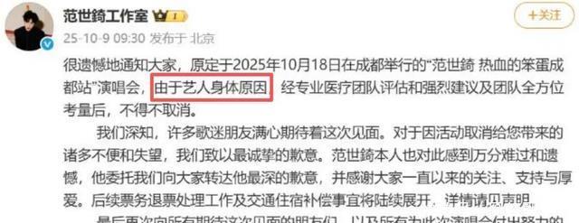 或许范先生自己也没想到,这样的情况也会发生在自己的身上。 前段时间,范先生的工作室发文取消了他的演唱会,并解释到是他的身体出现了问题。