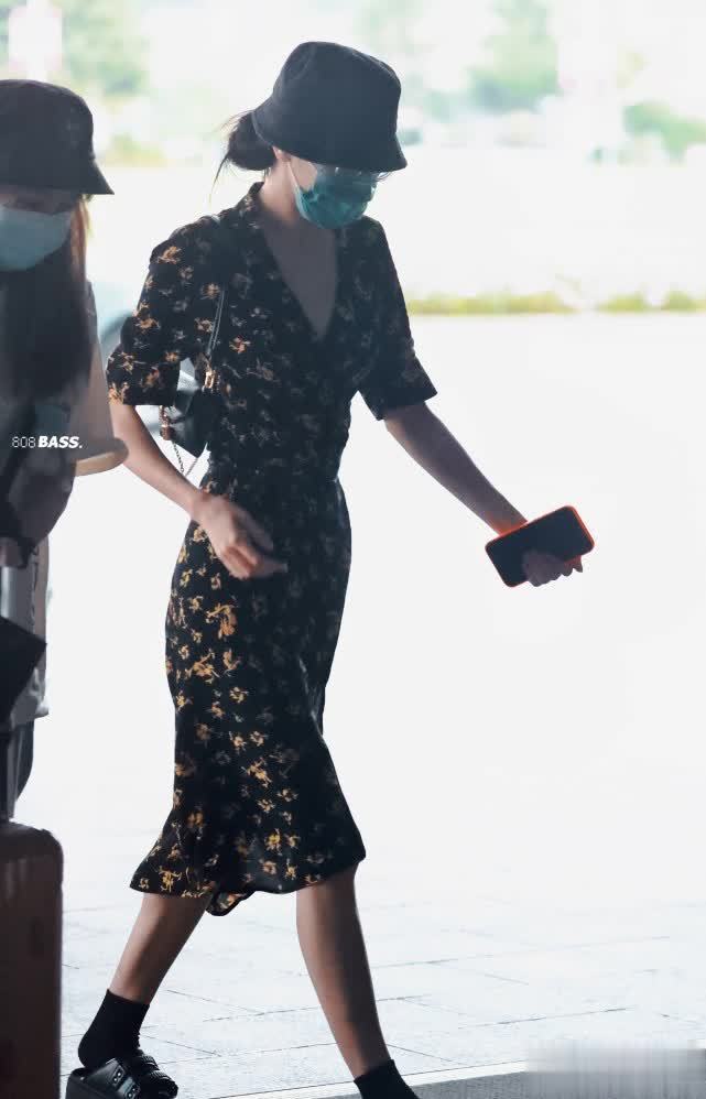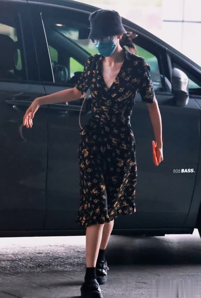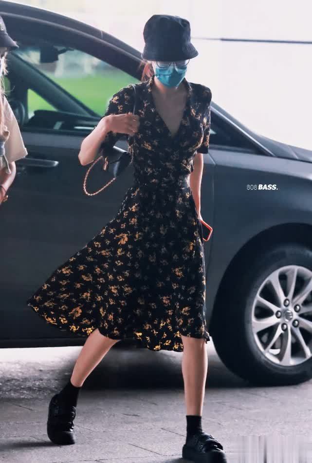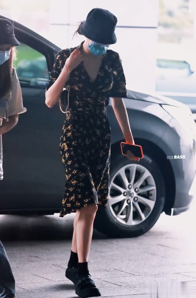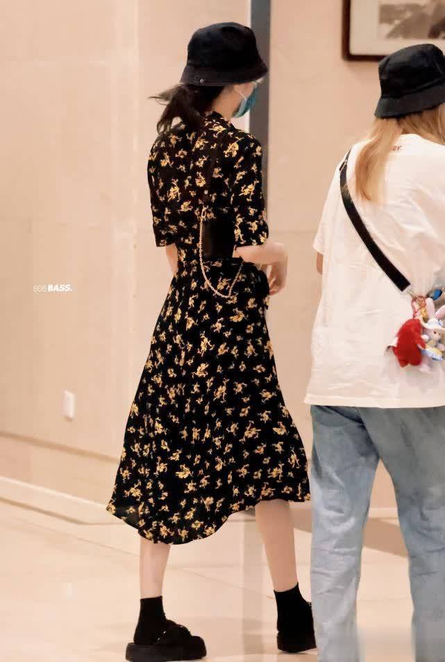 前段时间迪丽热巴就穿着一条黑色绣花裙现身机场,整个造型是比较低调的,戴着渔夫帽和口罩,但也挡不住女神的魅力。这款碎花裙采用了均匀小碎花设计,低领口的版型可以很好修饰身材,也显得比较纤细苗条。