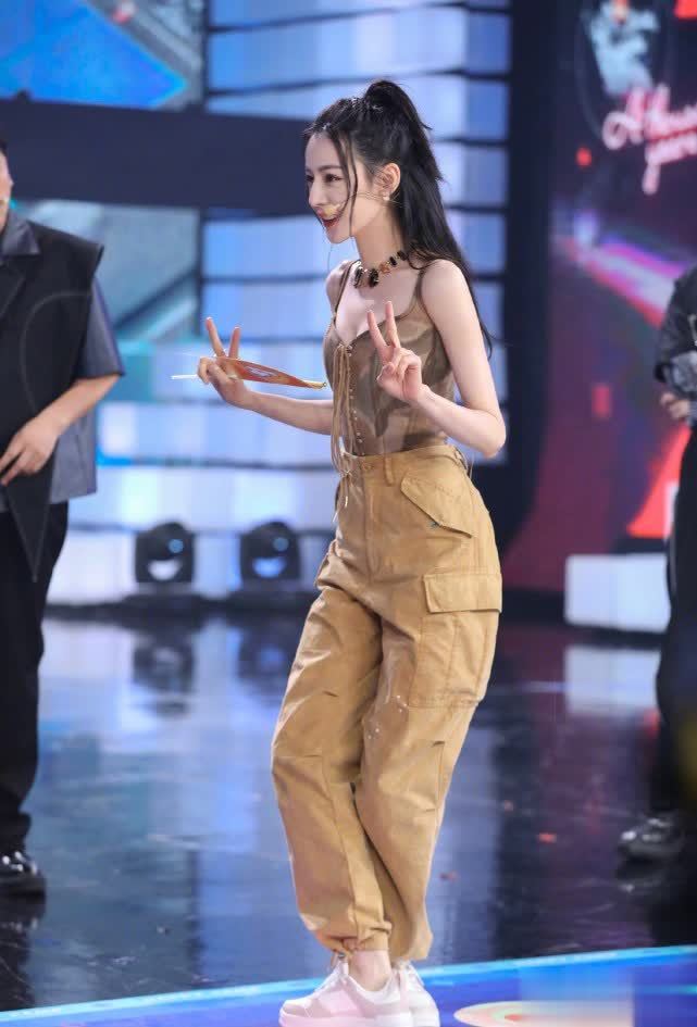 我们再来看一下迪丽热巴的其他造型。一身卡其色的穿搭,比较简约休闲的风格,显得皮肤白皙有气质,一件吊带配工装长裤清爽舒服,看着也十分帅气,和碎花裙的优雅是不一样的。