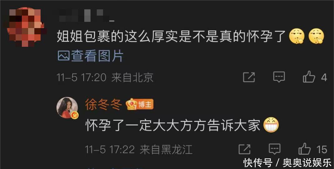 徐冬冬还专门回复了这条评论,表示自己如果真的怀孕了,一定会大大方方的告诉大家。说实话,她倒是挺坦诚的,丝毫没有觉得怀孕是什么“难以启齿”的事情。