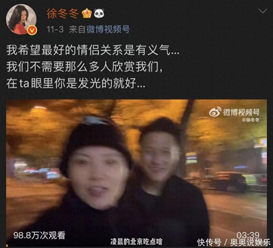 值得一提的是,在徐冬冬发的vlog中写了一份文案,挺戳人心的,称“情侣关系要有义气”。这句话说的真的挺好的,一段正常的情侣关系可不就像是兄弟义气一样吗?